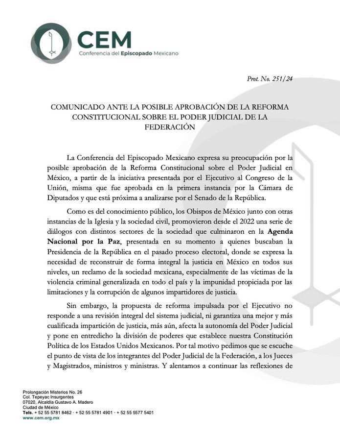 Hacemos votos para que el Senado de la República, tomando en cuenta la trascendencia del tema, se dé el tiempo para reflexionar con profundidad